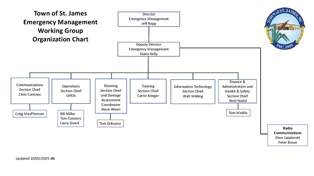 Purpose: The Town of St. James Emergency Management Work Group is established to advise and coordinate with the Town Manager and