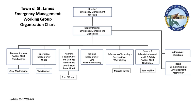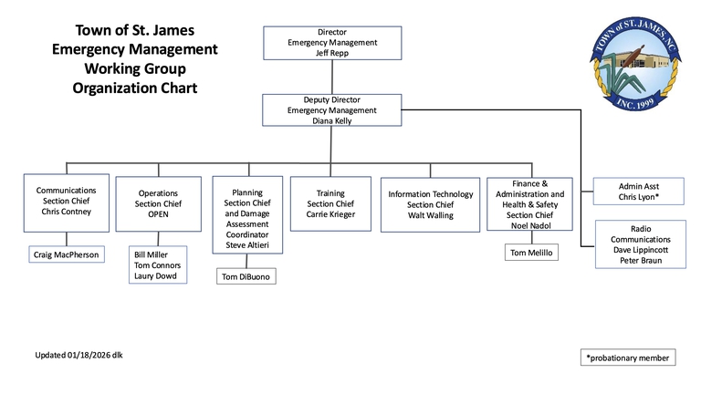 Purpose: The Town of St. James Emergency Management Work Group is established to advise and coordinate with the Town Manager and